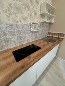 - Полностью меблирована: раздвижной диван, кухонный гарнитур, холодильник, стиральная машина, вытяжка