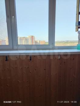• Зал = 23 м² — светлый просторный, застеклённая лоджия отделана деревом. В зале установлен хороший телевизор.