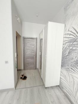Квартира-студия новая, сдается впервые и на длительный срок. Добавим место для хранения одежды, кухонный стол и стулья.
