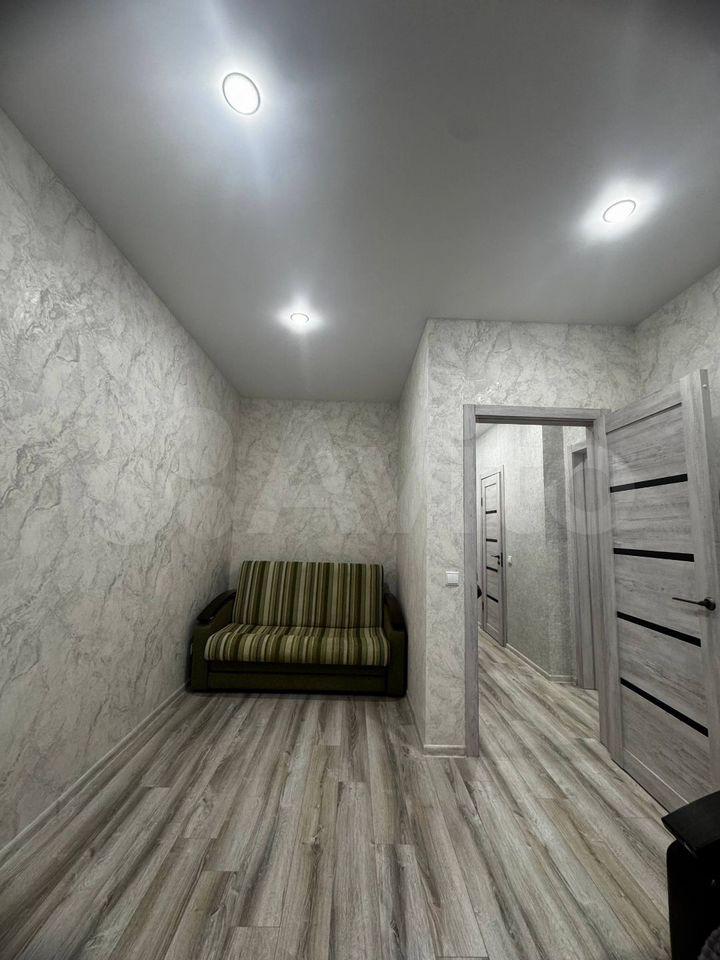 В квартире выполнен косметический ремонт, который создаёт приятную атмосферу для проживания. Комнаты обставлены необходимой мебелью, а на кухне есть всё для комфортного приготовления пищи. Из техники в вашем распоряжении: кондиционер, холодильник, телевизор и стиральная машина. Санузел совмещённый, с ванной.