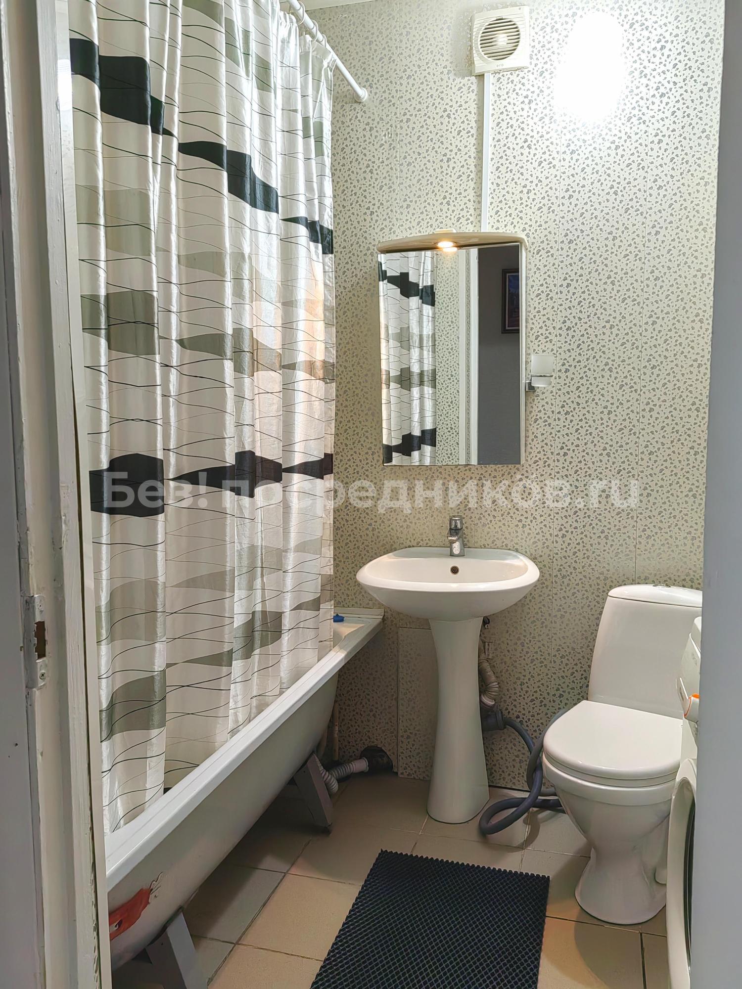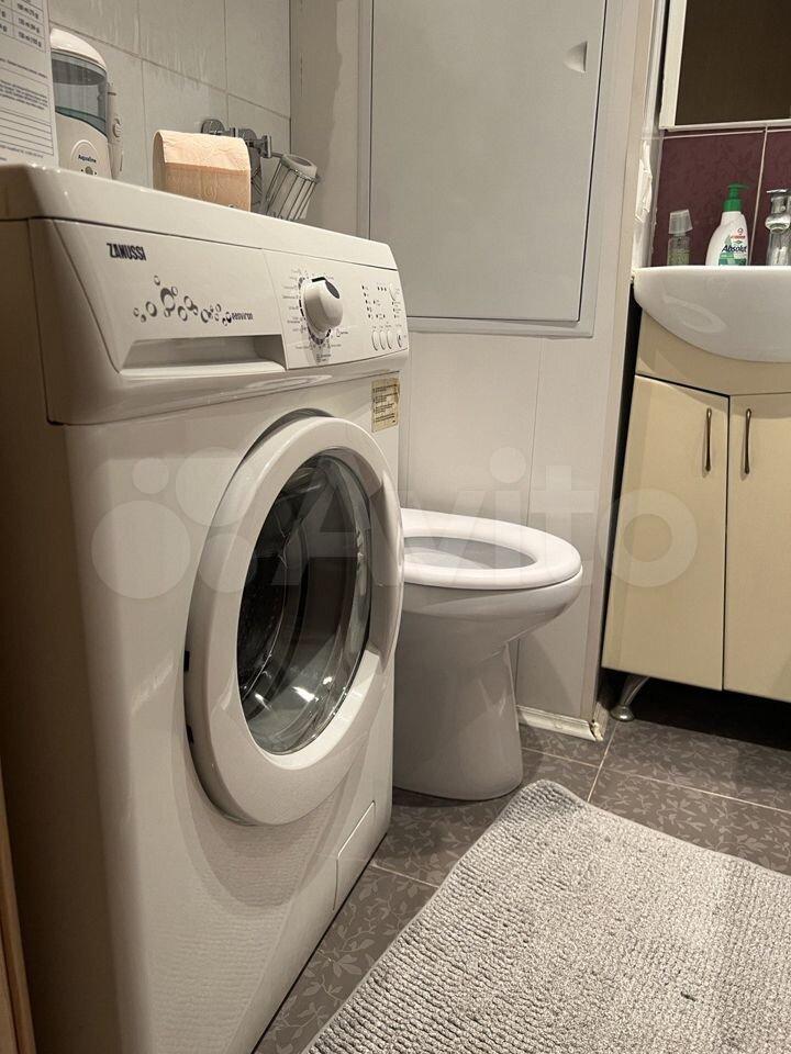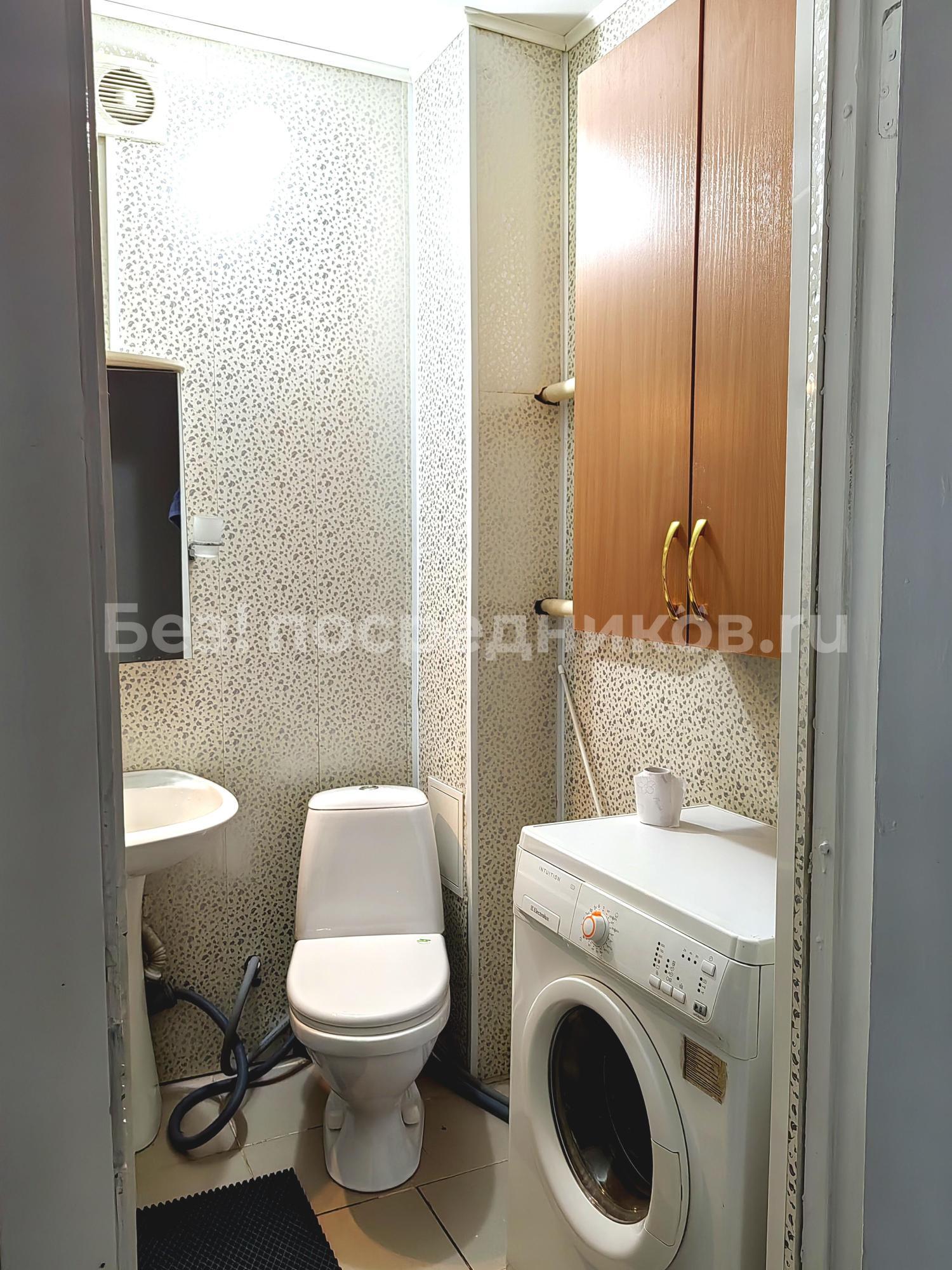 В комнате горячая и холодная вода, туалет, душевая кабина, стиральная машина.