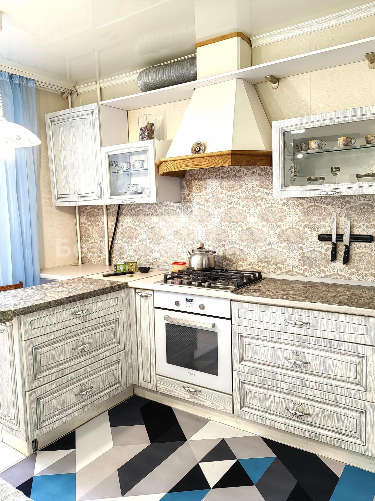 Кухня просторная, оборудована всем необходимым: холодильник, плита, микроволновая печь и посудомоечная машина. Из кухни есть выход на застекленную лоджию, где можно наслаждаться свежим воздухом.