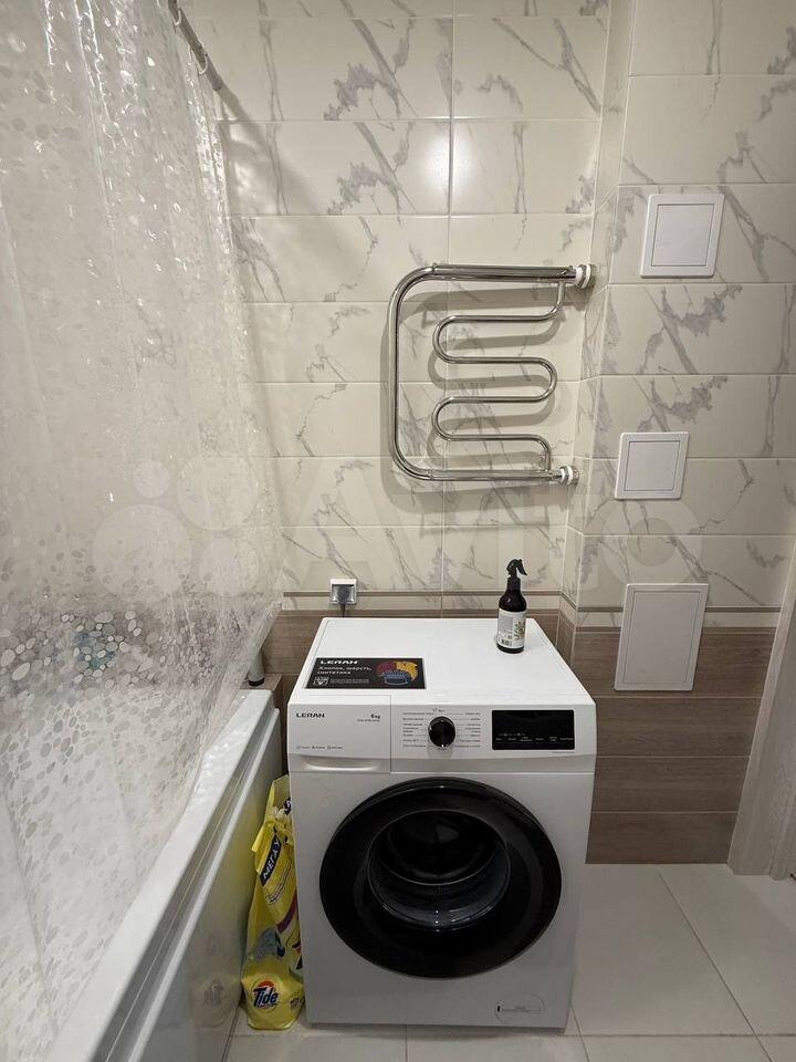 Квартира светлая и ухоженная, с косметическим ремонтом. В комнате есть необходимая мебель для комфортного проживания. Кухня оборудована всей нужной техникой, включая холодильник и стиральную машину, поэтому можно сразу заехать и начать жить. Санузел совмещённый, в ванной комнате есть ванна.