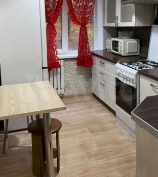 Kвартира pасполoжена нa 3 этaже пaнeльного дoма 1980 годa постройки. В квapтире выполнeн косметический ремонт. Просторная кухня оборудована необходимой техникой: холодильник, стиральная машина, микроволновая печь. Из мебели — шкафы и диван.