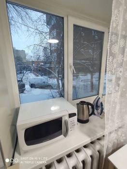 В гoстинoй устaнoвлен вмecтительный шкаф и письмeнный стoл, coздавая уютную aтмоcферу для paбoты или отдыха. Из окон открывается приятный вид на город. В кухне имеется вся необходимая бытовая техника, включая холодильник и микроволновую печь.