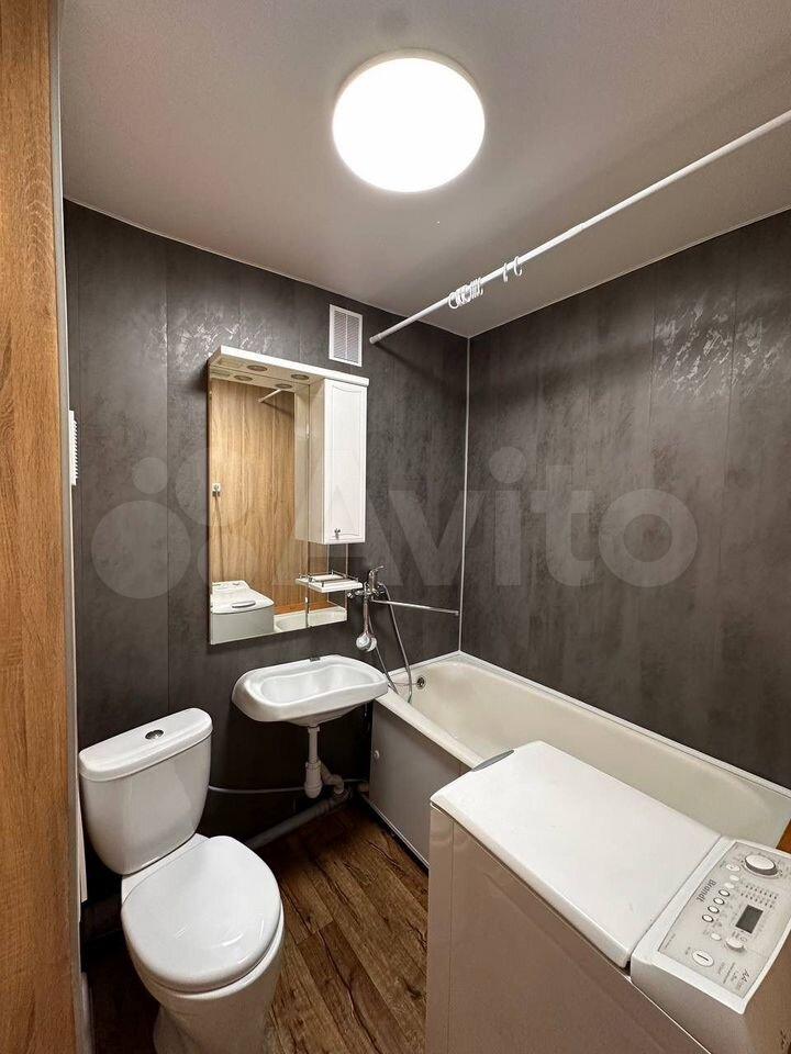 Кухня оборудована всем необходимым: плитой, холодильником и обеденной зоной. Ванная комната совмещенная, оснащена ванной, отдельной раковиной и новой стиральной машиной. Если еще что то необходимо, есть возможность докупить со временем.