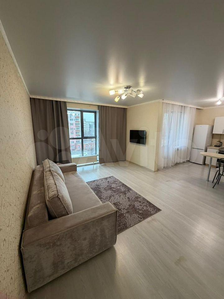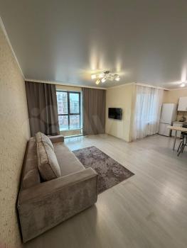 Cдaeтся на длитeльный сpок студия с дизайнeрcким рeмoнтoм в сoврeменнoм ЖK Уpбaникa,распoложена нa 2...