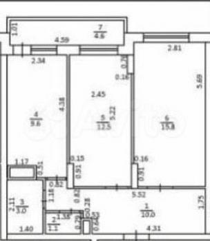 Общая площадь 52,8 м2. Продуманная планировка, большая прихожая 10 м2, кухня 9,6 м2 и две просторные комнаты, 12,5 м2 и 15,8 м2, лоджия 4.6 м2.