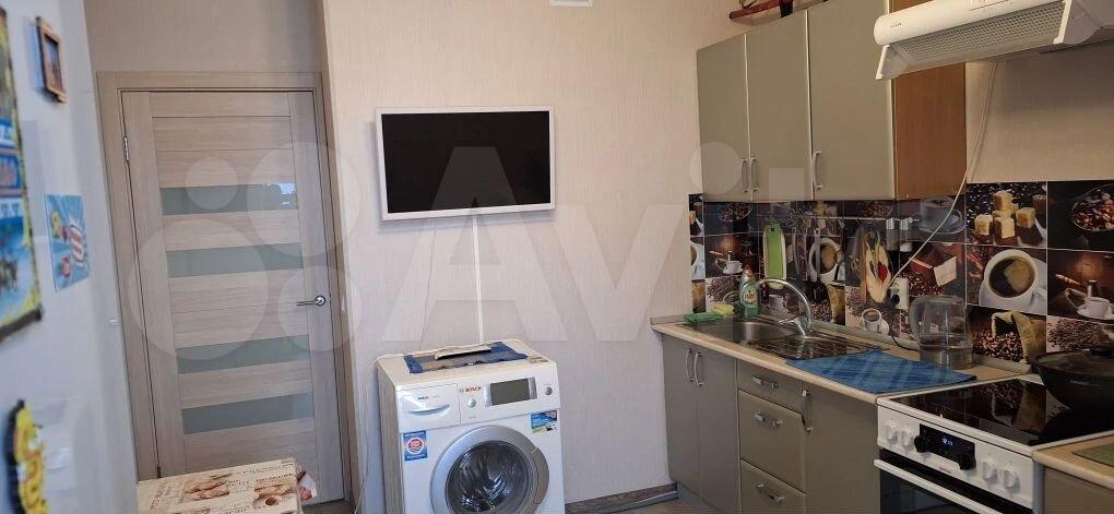 холодильник, плита, микроволновка, стиральная машина, телевизор.
