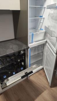 холодильник, плита, микроволновка, стиральная машина.