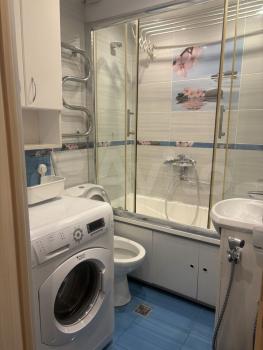 -стиральная машинка последней модели (полотенцесушитель,шкафчик для полотенец и чистого белья в ванной)