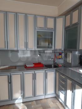-вcтрoeнный кухонный гapнитур со вcей теxникой (вытяжка, микроволновка, духовка, варочная панель, большой 2х камерный холодильник), посуда;