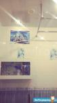 На полу ламинат и керамогранит, натяжной потолок в гостиной, кафельная ванная + санузел.