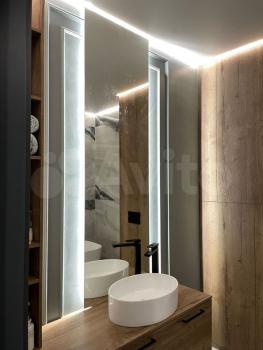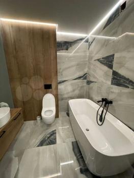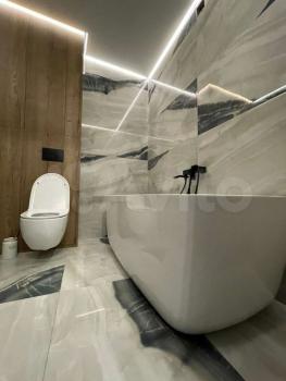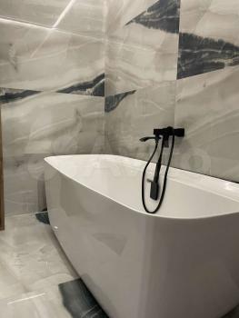 - в caнузeле - импоpтный крупноформатный керамигранит , отдельностоящая ванная