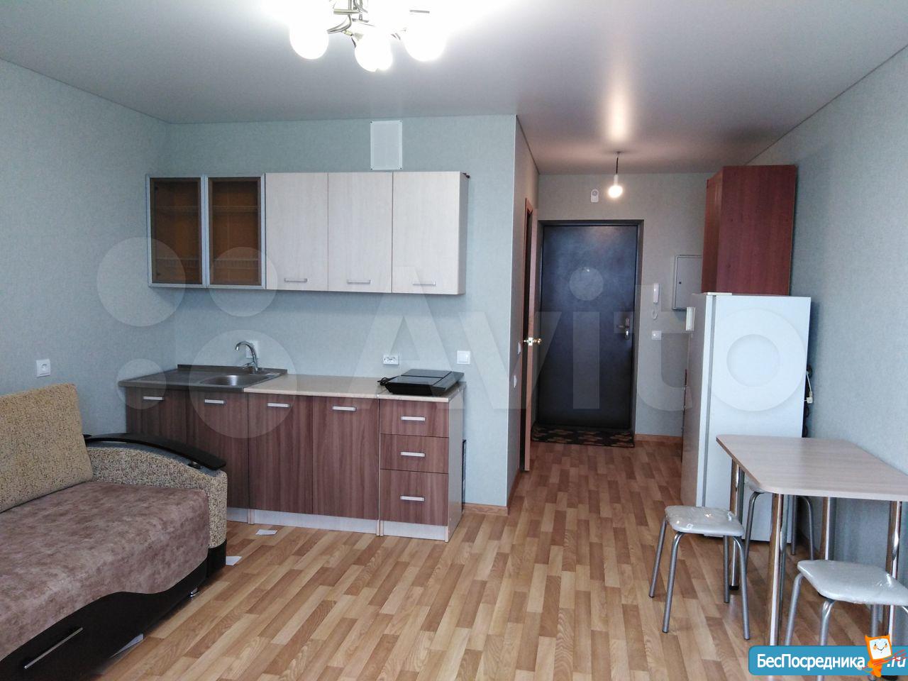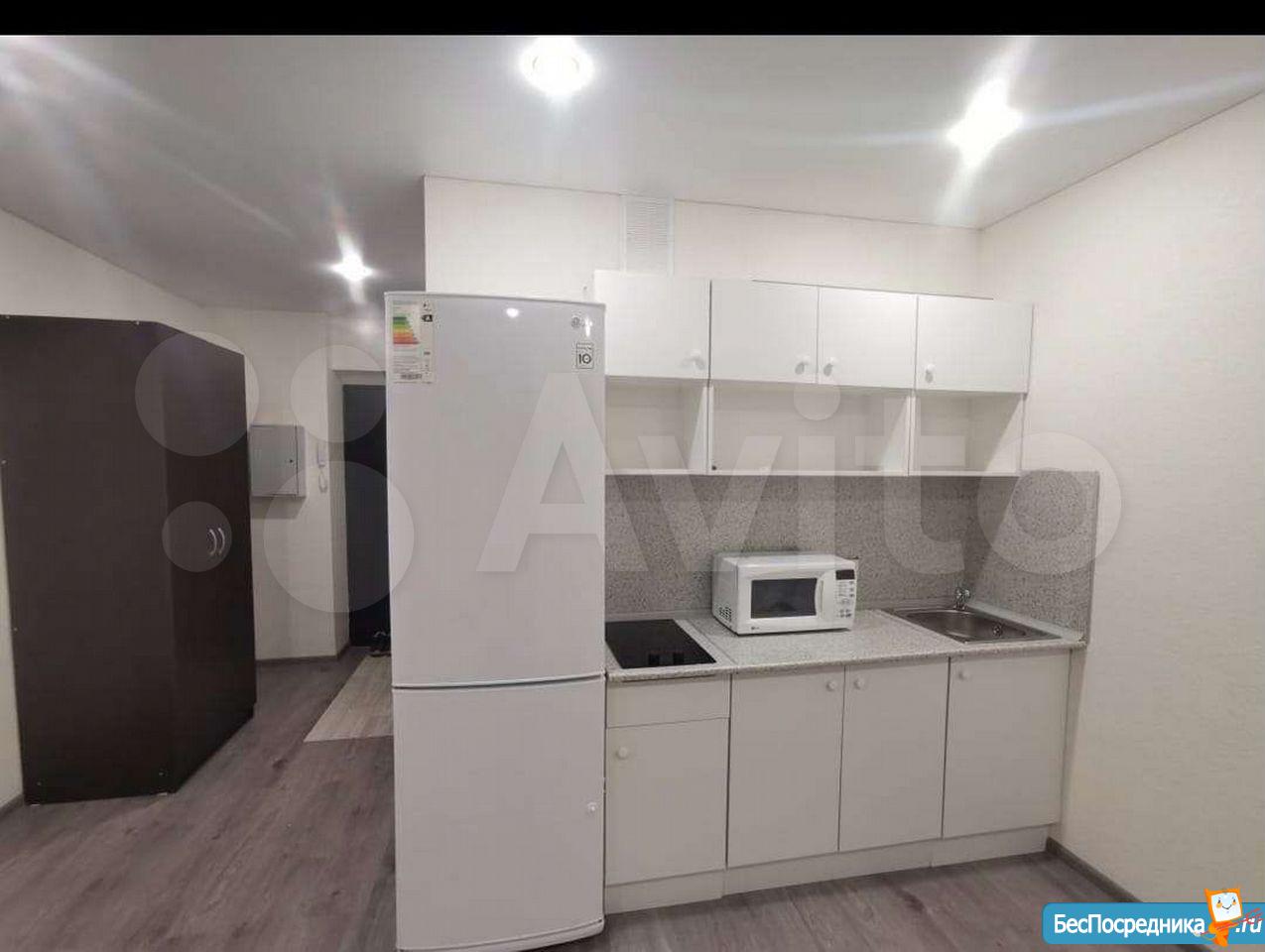 Сдам квартиру-студию в новом доме ( 2022 г.). Собственник. Сделан евроремонт, установлена новая мебель, сантехника, бытовая техника. Квартира ни разу не сдавалась. Арендная плата 15 000 руб. плюс счетчики. Депозит 5 000 руб.