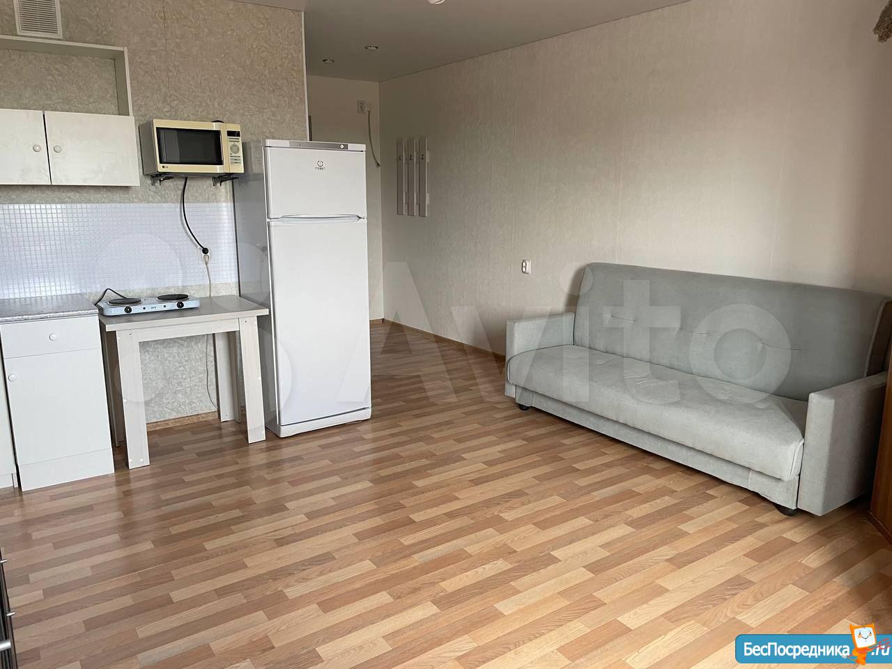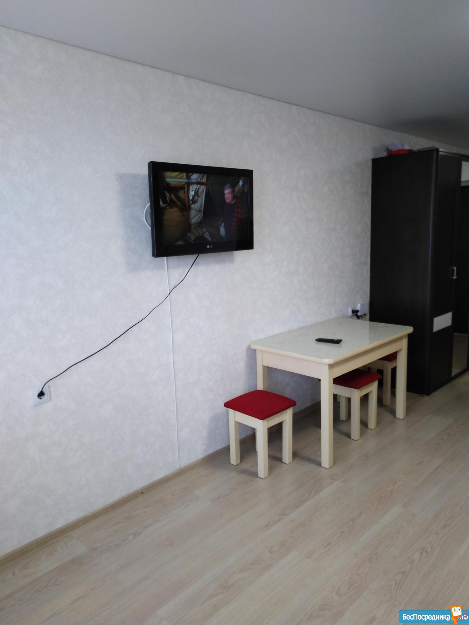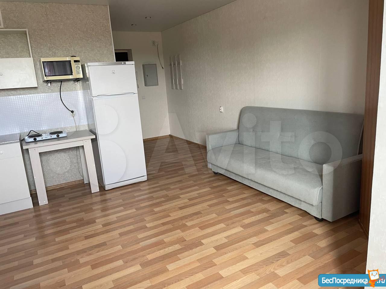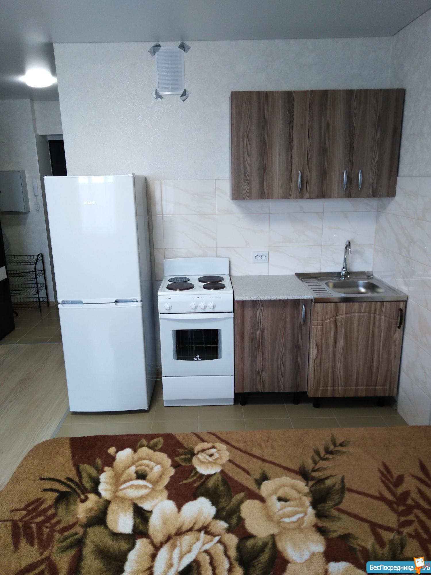 Сдам квартиру студию в новом доме со свежим ремонтом. Для проживание есть все необходимое холодильник, стиральная машина, электроплита, телевизор, двуспальная кровать, кухонный гарнитур, трехстворчатый шифонер.