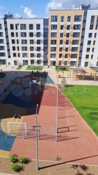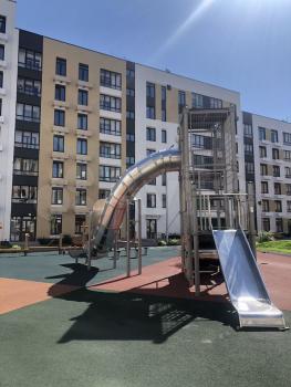 Закрытый, ухоженный двор. Со спортивной площадкой. Качелями.