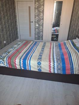 Сдается уютная, чистая квартира, окна во двор, две комнаты, большая кровать, шкаф, холодильник, стиралка с сушкой, микроволновка, телевизор.