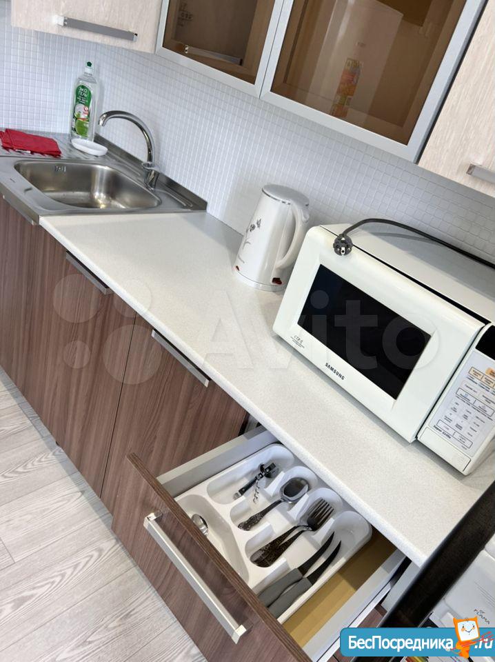 Квартира новая, никто не жил, делали для себя, всё есть, фото реальные: ТВ, проведён беспроводной интернет, Wi-Fi. Кухня, стиральная машина, холодильник, диван раскладной, столик, шкаф для вещей и для одежды, балкон застеклён, обшит деревом. Квартира очень тёплая, дверь поменяли, ванная - в кафеле, на полу - ламинат. Тихое чистое место, рядом магазины и автобусная остановка.