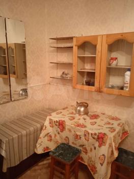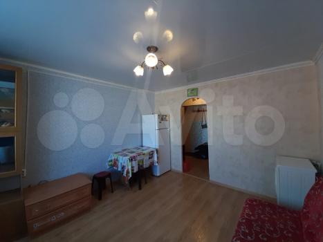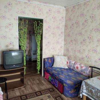 В комнате: два современных вместительных шкафа, сервант, два раскладывающихся дивана, тумба с телевизором, гостинный стол, стулья, табуретки. Новое трёхстворчатое пластиковое окно с москитной сеткой. Есть тюль и штора блекаут.