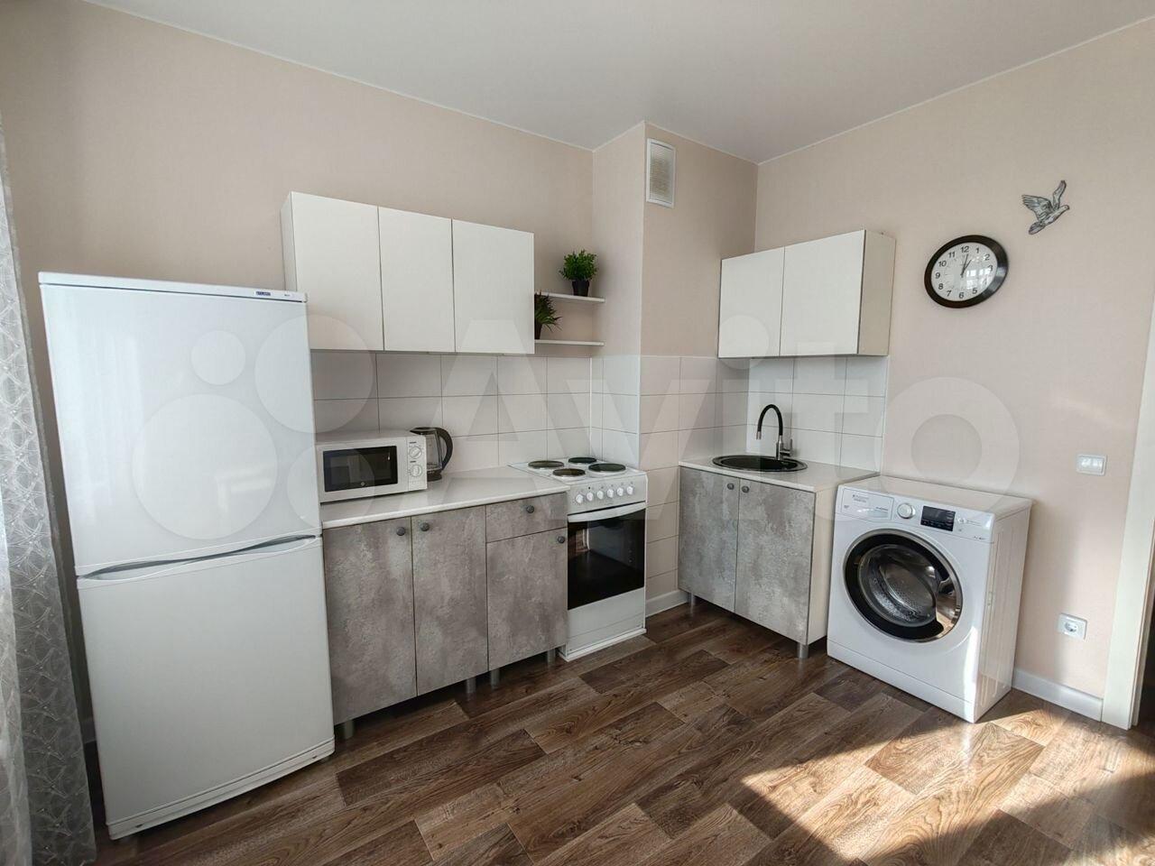 В квартире имеется все необходимое для комфортного проживания: двухспальный диван, стол, эл.плита с духовкой, стиральная машина, кухонный гарнитур.