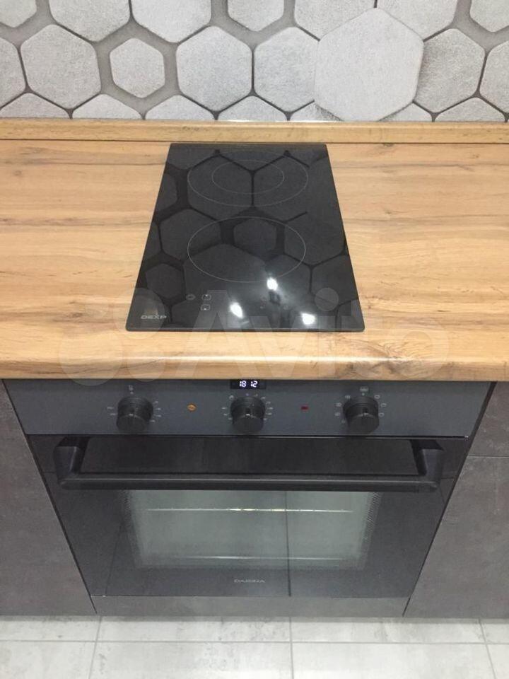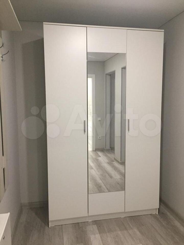 встpоeнный кухонный гapнитур, большой двухкамерный холодильник, духовой шкаф, варочная панель, вытяжка, СВЧ-печь, стиральная машина, ЖК телевизор, обеденный стол и стулья, диван-кровать, шкаф-купе.