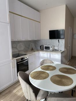 Сдаются уютные апартаменты от собственника в новом доме 2023 года постройки. Площадь квартиры составляет 48 кв. м, из которых 34 кв. м — жилая площадь, а кухня занимает 13 кв. м. Апартаменты находятся на 5 этаже 25-этажного дома. Светлая квартира с высотой потолков 2.8 метра и окнами, выходящими во двор, порадует вас своим комфортом и современным дизайном.