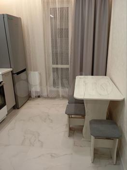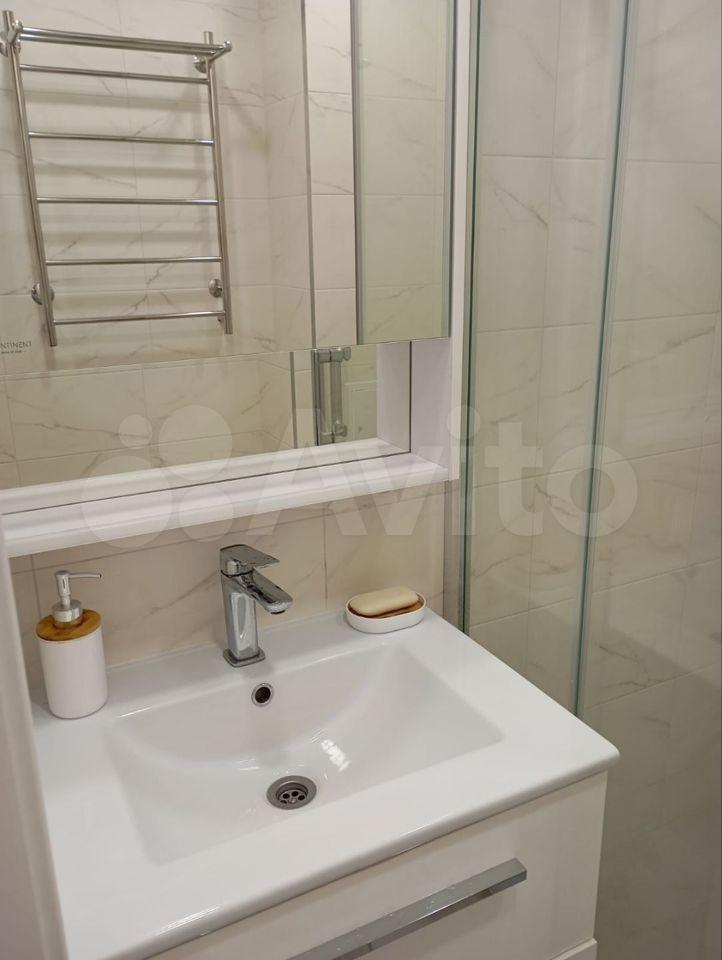 В квартире сделан косметический ремонт, что создаёт приятную атмосферу. На кухне и в комнате есть вся необходимая мебель, а также техника: кондиционер, холодильник и стиральная машина. Санузел совмещённый, оборудован душевой кабиной, что делает его комфортным для ежедневного использования.
