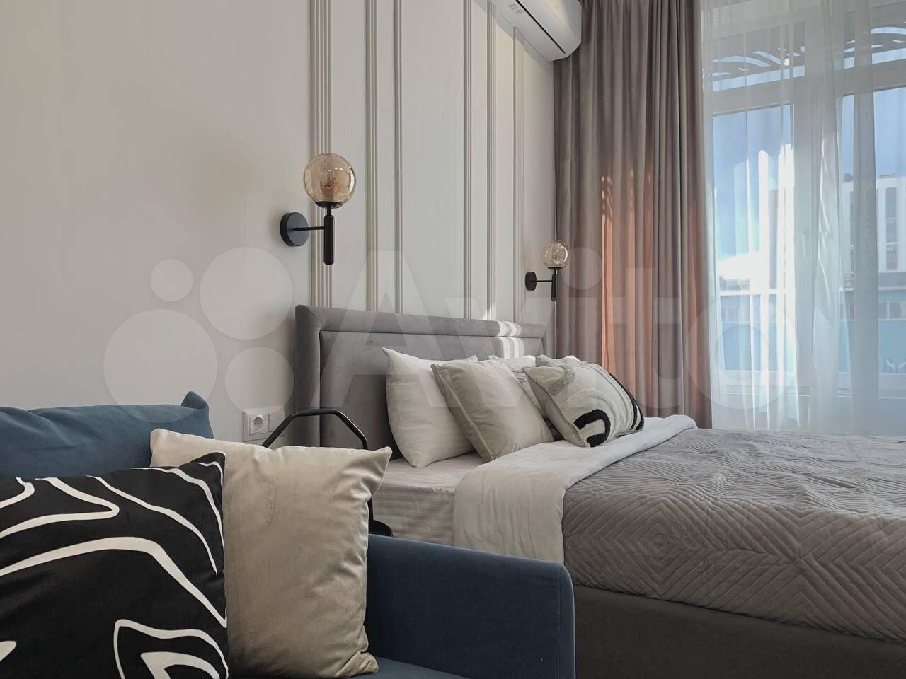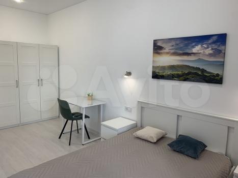 Спальня(15 м2): двухспальная кровать, рабочее место. Кухня-студия(13 м2): диван, стол и стулья. Через кухню-студию имеется выход на лоджию. Высота потолка-3 м, вид во двор. В квартире есть все необходимое для комфортной жизни- постельные принадлежности, сковородка, кастрюля, эл.чайник, микроволновая печь, пылесос, утюг.