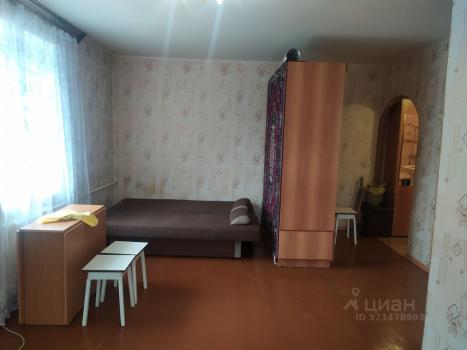 В квартире имеется необходимая мебель — спальные места. Комнаты смежные, санузел совмещённый. На кухне площадью 6 м² установлен телевизор.