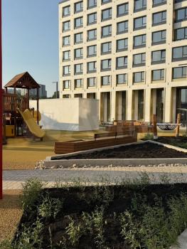 • Дом новый, с чистыми подъездами и благоустроенной территорией.