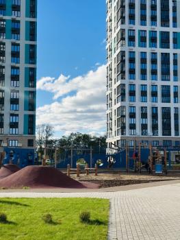 Шикарный двор для прогулок с обилием зелени, площадок, беговой дорожки, ухоженный современный подъезд.