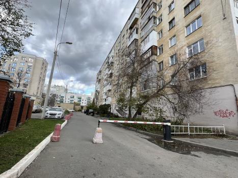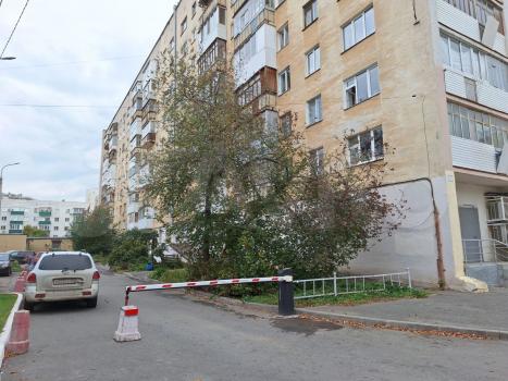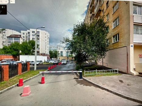 Двор со шлагбаумом. Во дворе имеется парковка, всегда есть места. Рядом остановка общественного транспорта.
