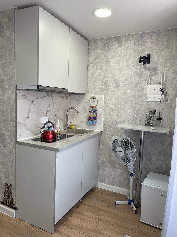 Студия со своим санузлом, душевой и свежим ремонтом, находится в бывшей малосемейке, где большинство переделанных комнат в студии имейте это ввиду, пожалуйста!!! Хороший, чистый, а самое главное тихий блок.