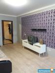 В квартире выполнен косметический ремонт. Просторная кухня оснащена необходимой мебелью и техникой, включая холодильник. В гостиной стоит удобный диван и телевизор, в спальне — кровать и шкаф. Ванная комната оборудована ванной и стиральной машиной. Также есть балкон, где можно отдохнуть на свежем воздухе.
