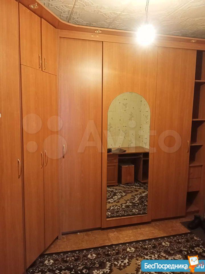 В комнате: шкаф купе - просторный, одноместная кровать.