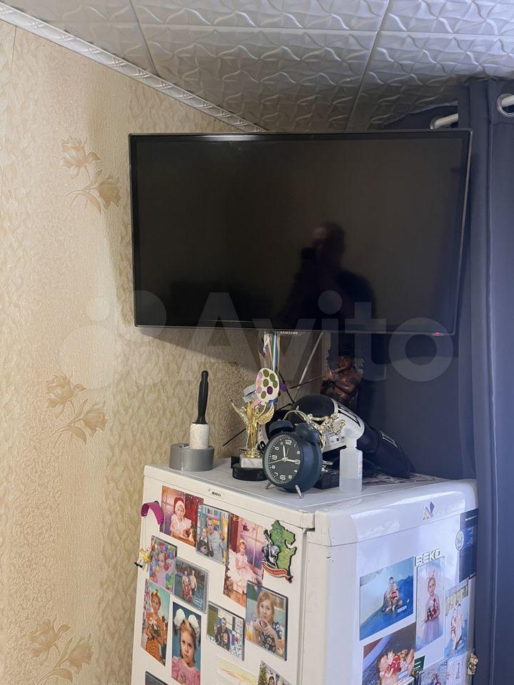 холодильник, плита, микроволновка, телевизор.