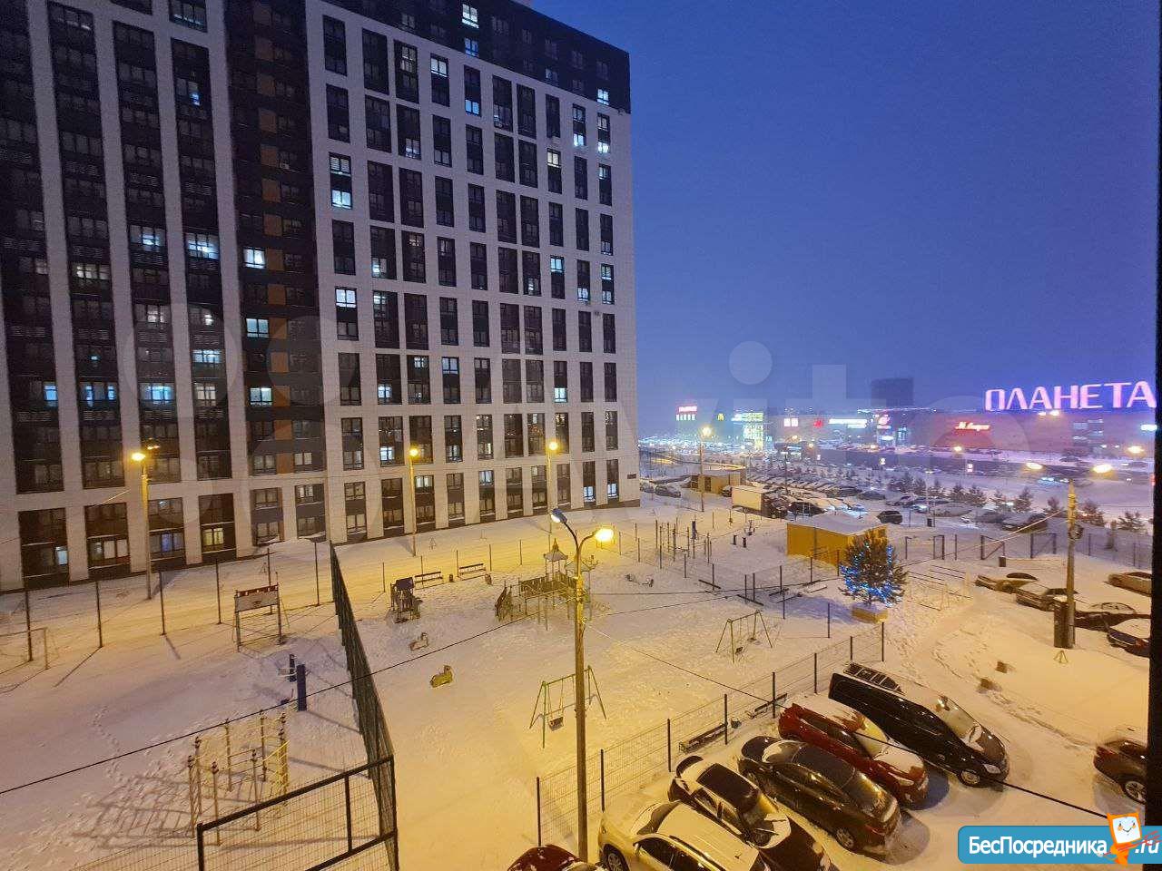 Новая квартира напротив ТРЦ Планета!!! Есть кухонный гарнитур, холодильник,диван, шкаф,телевизор,стиральная машина, микроволновая печь. 18 этаж, 45квм, большой коридор с возможностью установки ещё одного дивана, при необходимости предоставим детскую кроватку. Удачное расположение квартиры - окна выходят во двор и поэтому не слышна дорога и ТРЦ планета. До конечной остановки 3 минуты, до проспекта С.Юлаева 2 минуты. Наличие паркинга на ТРЦ Планета решает проблему с парковкой вашего автомобиля. Во дворе имеются три площадки с мягким покрытием :детская, с тренажёрами и площадка для футбола. Сдаёт собственник на длительный срок, комиссия отсутствует. Цена 18000 + счетчики.
