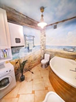 Имеется просторная ванная с санузлом и отдельный гостевой туалет.