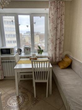 В квартире сделан стильный современный ремонт. На кухне площадью 9 кв. м установлена вся необходимая мебель и техника, включая холодильник. В комнате также есть мебель. Санузел совмещенный, оборудован ванной и стиральной машиной. Проведен интернет, поэтому всегда будете оставаться на связи.