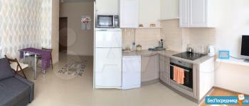 санузел - совмещённый, мебель - кухня, хранение одежды, спальные места, кондиционер, холодильник, плита, микроволновка, стиральная машина, водонагреватель, телевизор.