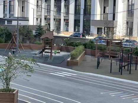 Закрытая охраняемая территория, двор без машин, детская и спортивная площадки с безопасным покрытием. Имеются велопарковки.