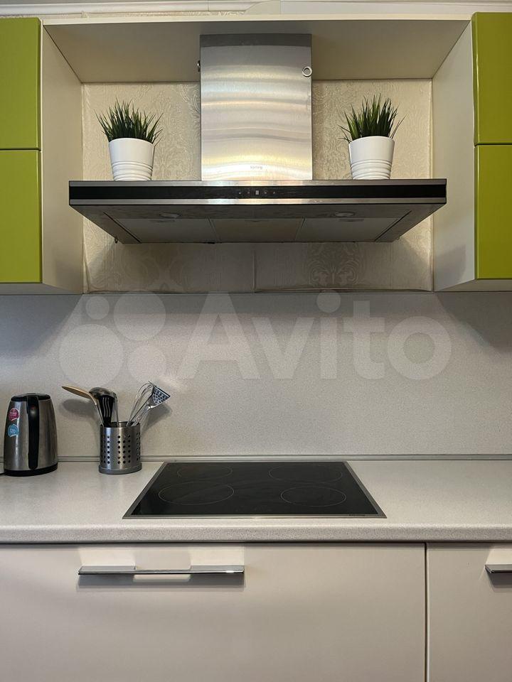 - кухня с холодильником, посудомоечной машиной, варочной поверхностью, вытяжкой, чайником, микроволновкой,