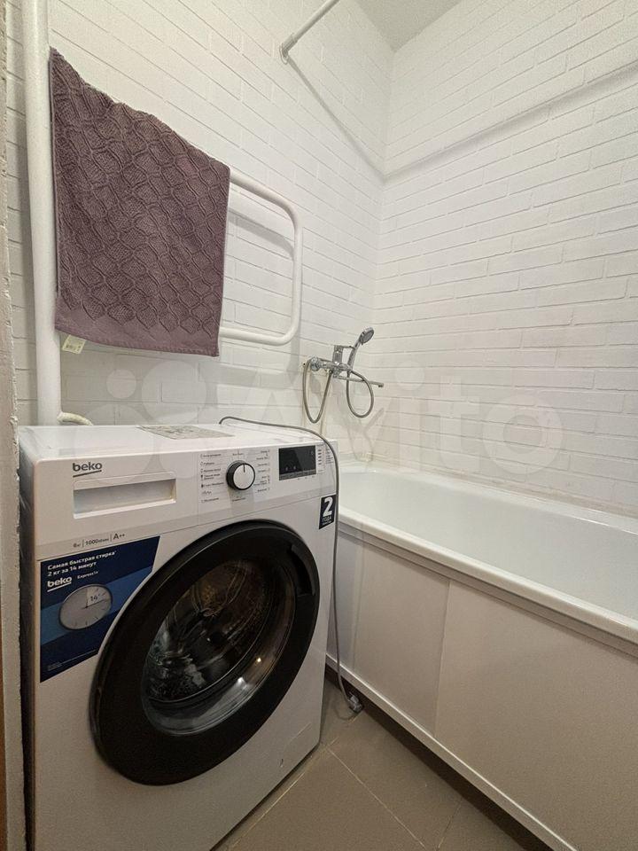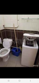 В квартире, техника: холодильник, стиральная машина, микроволновая печь.