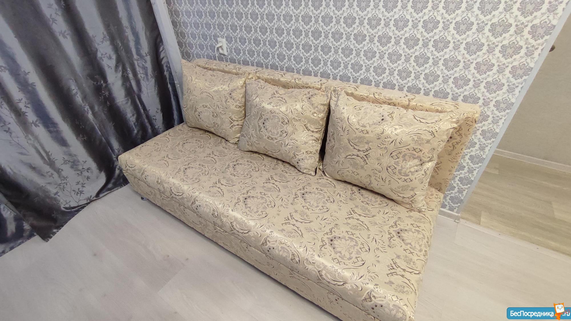 Большой вместительный шкаф-купе, раскладной диван в зале.