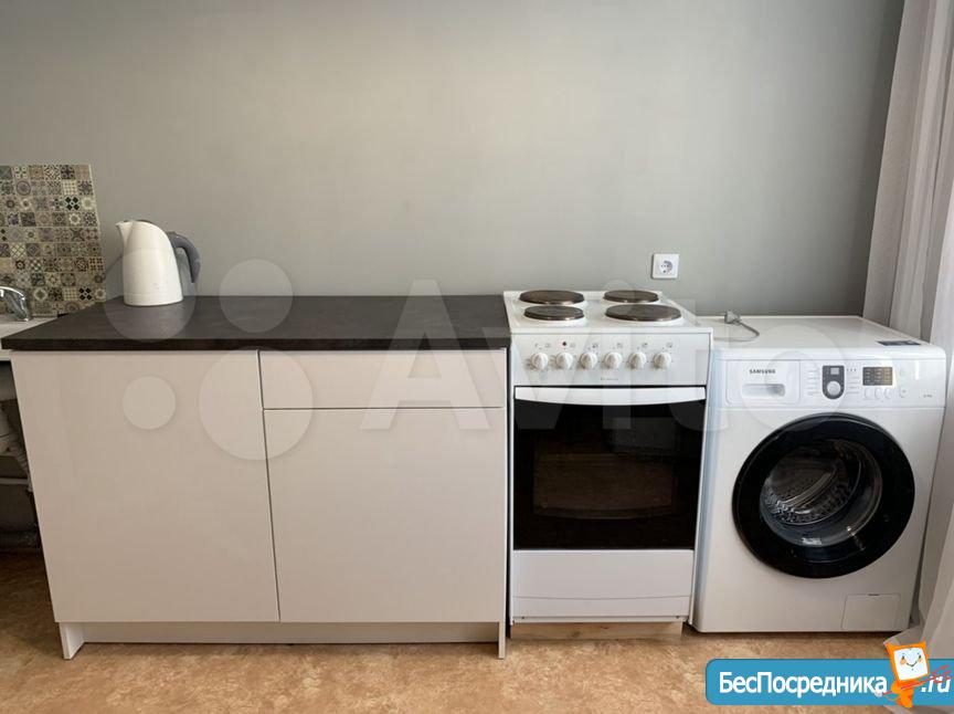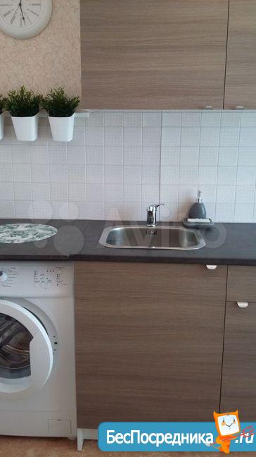 В квартире есть кухонный гарнитур, холодильник, стиральная машина, 2 дивана, кабельное ТВ и интернет.