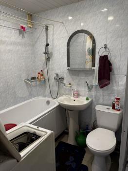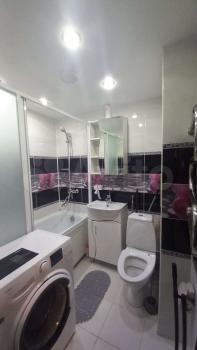 Санузел совмещенный, выполнен в современном стиле с качественной отделкой. Из окон открывается вид на зеленый двор с открытой парковкой. В квартире сделан свежий евро-ремонт, что создает приятную атмосферу для проживания.