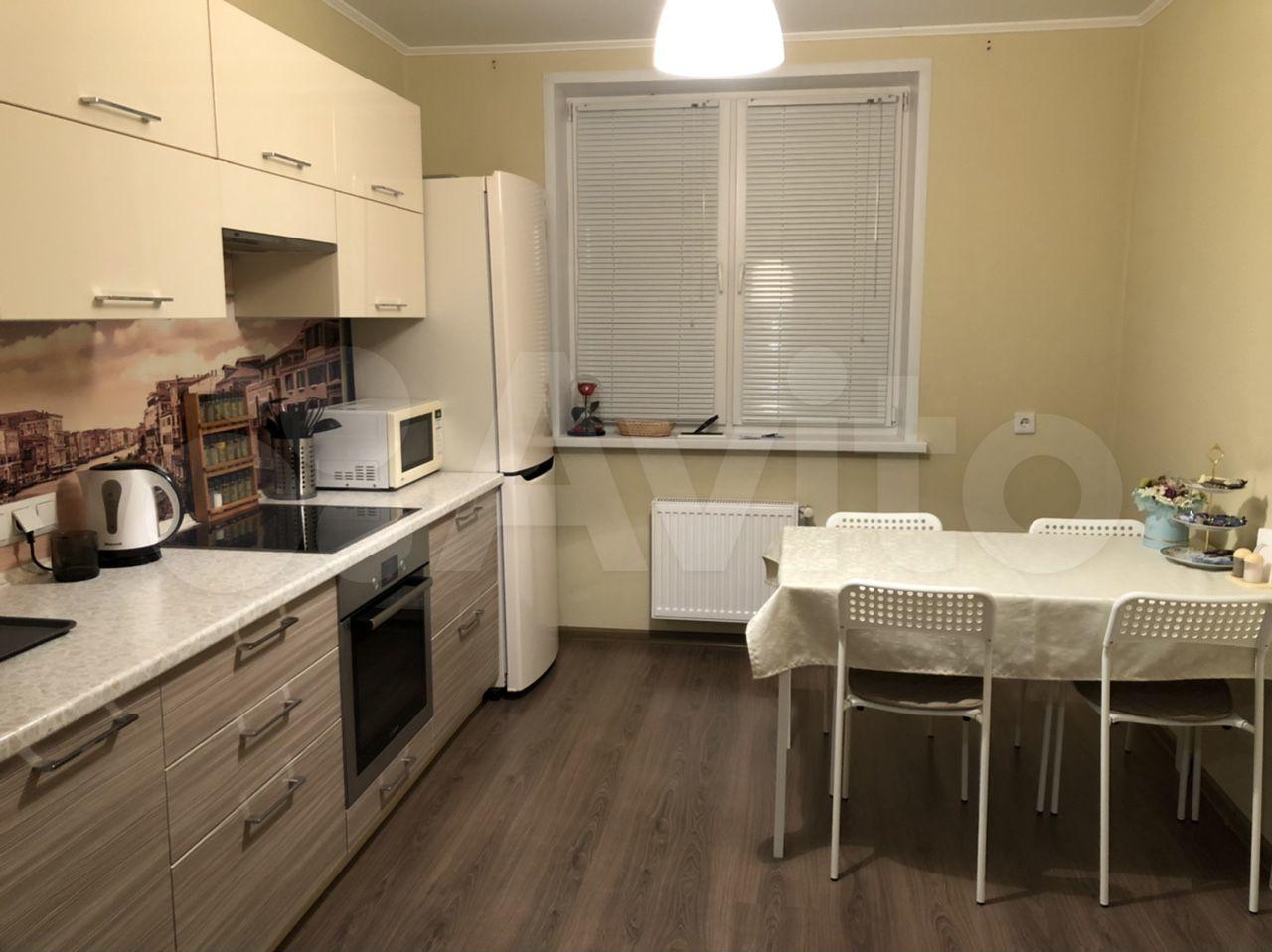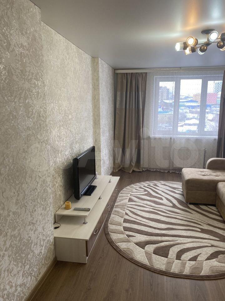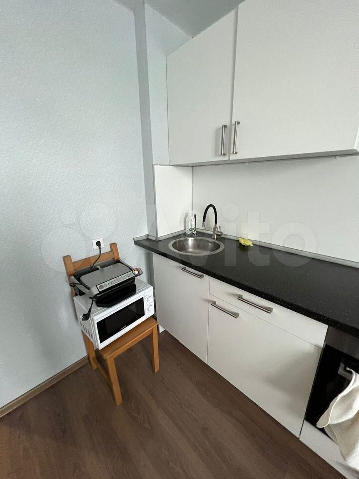 Есть все для проживания, кухонный гарнитур, посудомоечная машина, микроволновка, стулья и стол. В комнате есть телевизор и диван. Хороший ремонт.