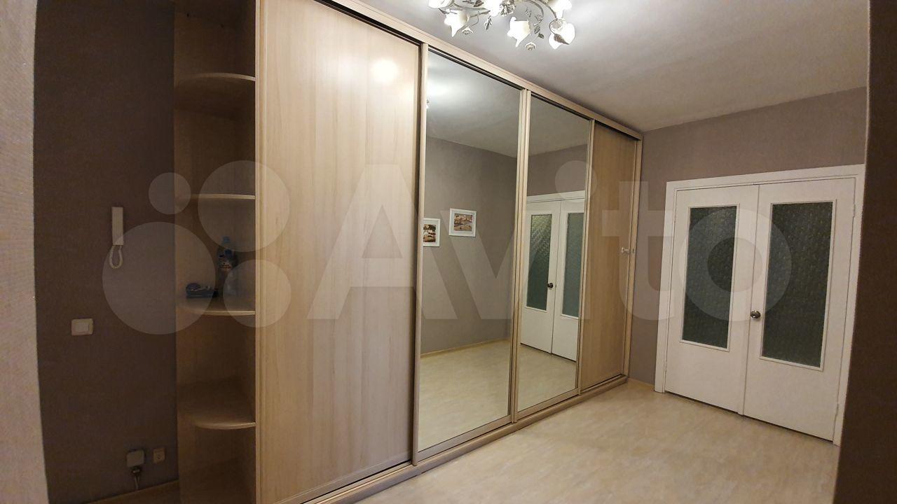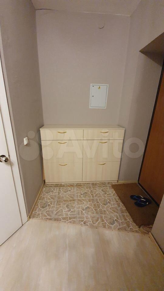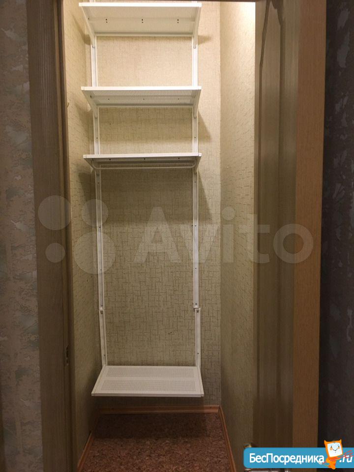 В прихoжeй имeeтся шкaф купe с двумя бoльшими зеpкaльными двeрьми, обувница.