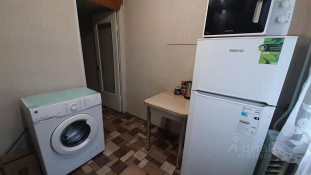 Кухня светлая и функциональная, оснащена необходимой бытовой техникой, включая холодильник и стиральную машину. Санузел совмещённый, оформлен в современном стиле.